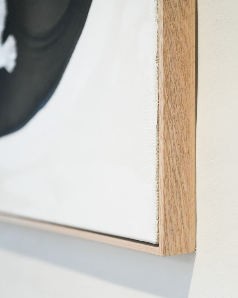 Værket er indrammet i en massiv egetræsramme.